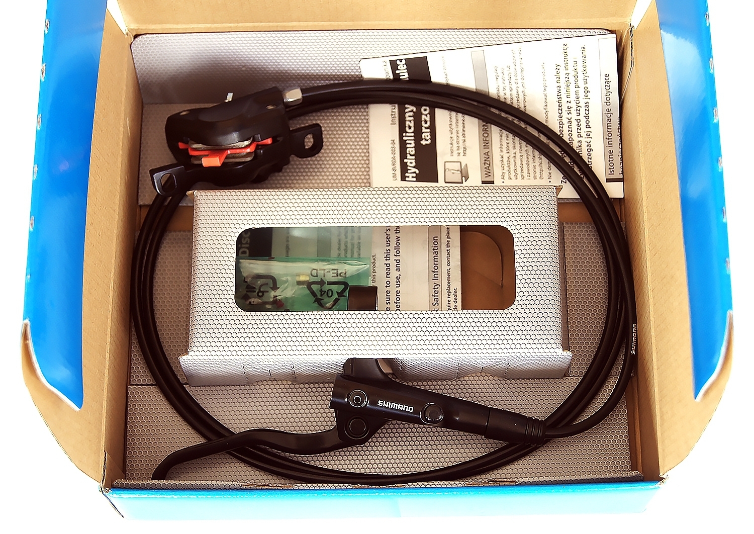 Hamulec jest zalany olejem mineralnym Shimano, odpowietrzony, gotowy do montażu i użytku.