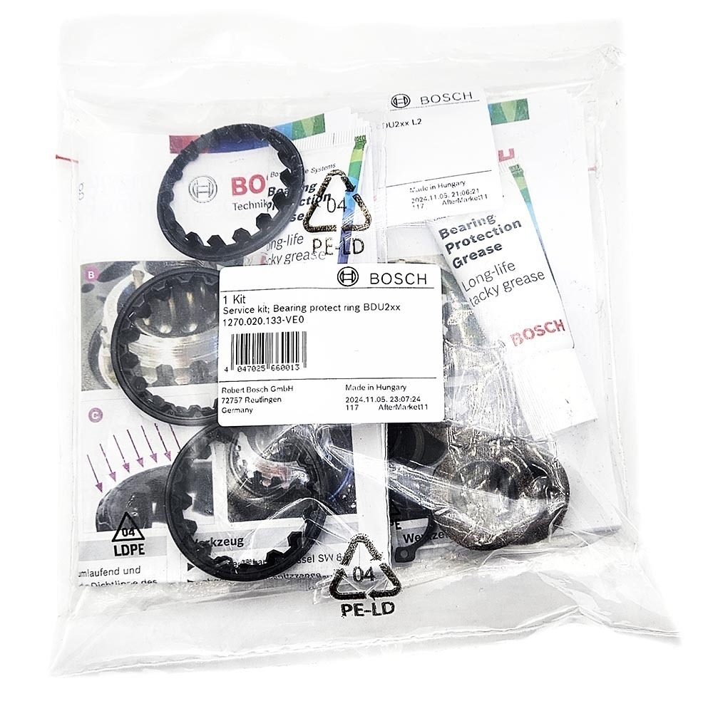 Zestaw serwisowy pierścieni ochronnych łożysk osi korby BOSCH jest przeznaczony do ochrony łożysk jednostek napędowych w systemach Bosch eBike. Prosty montaż.